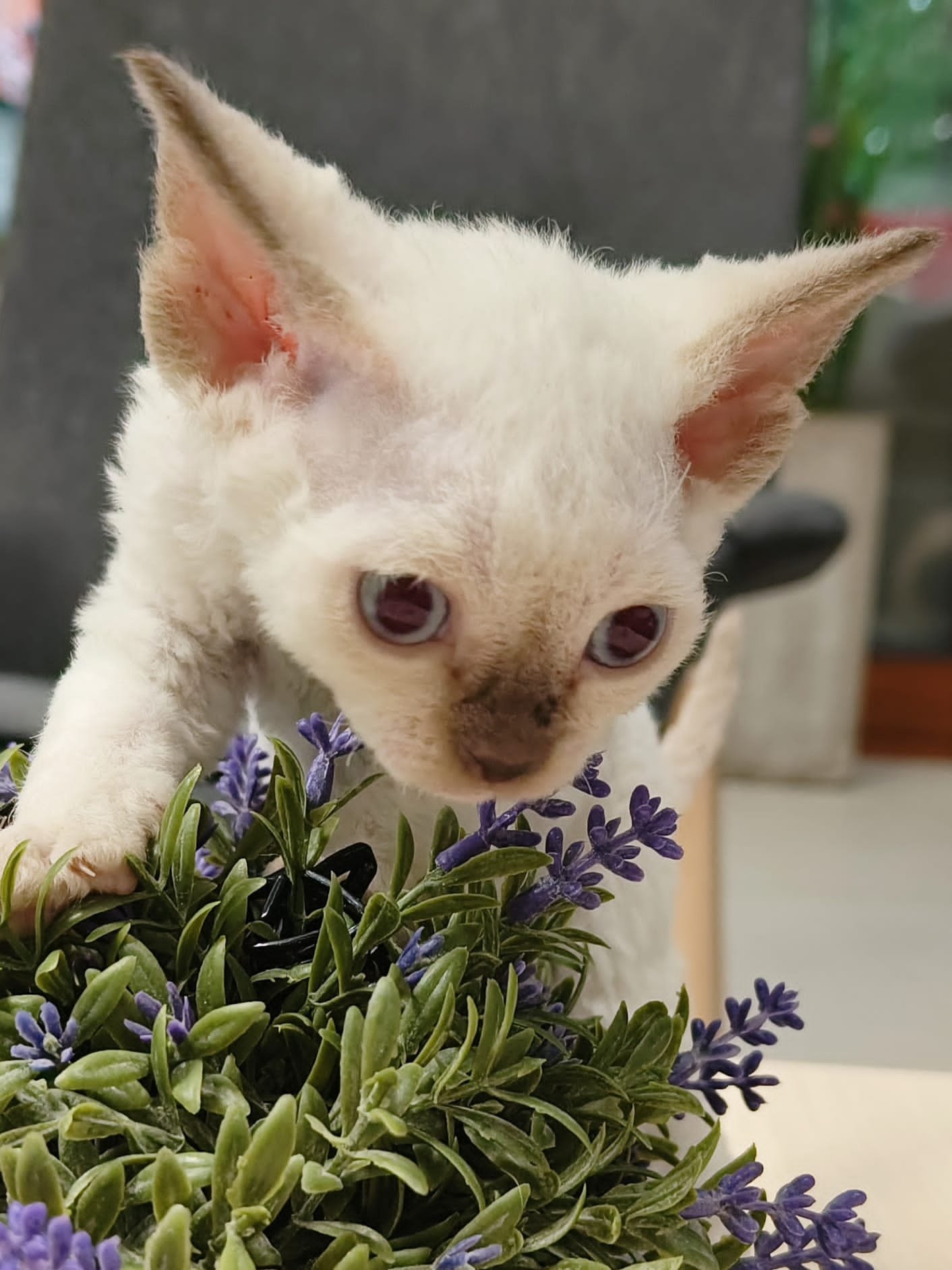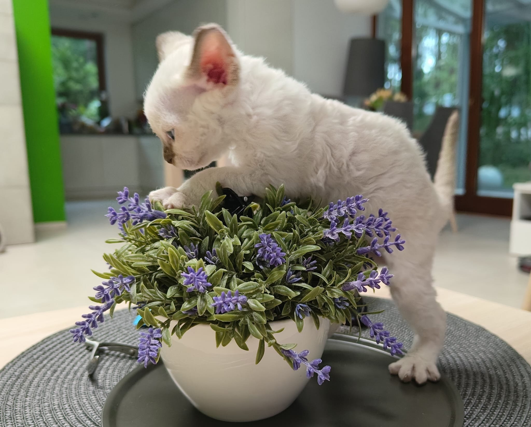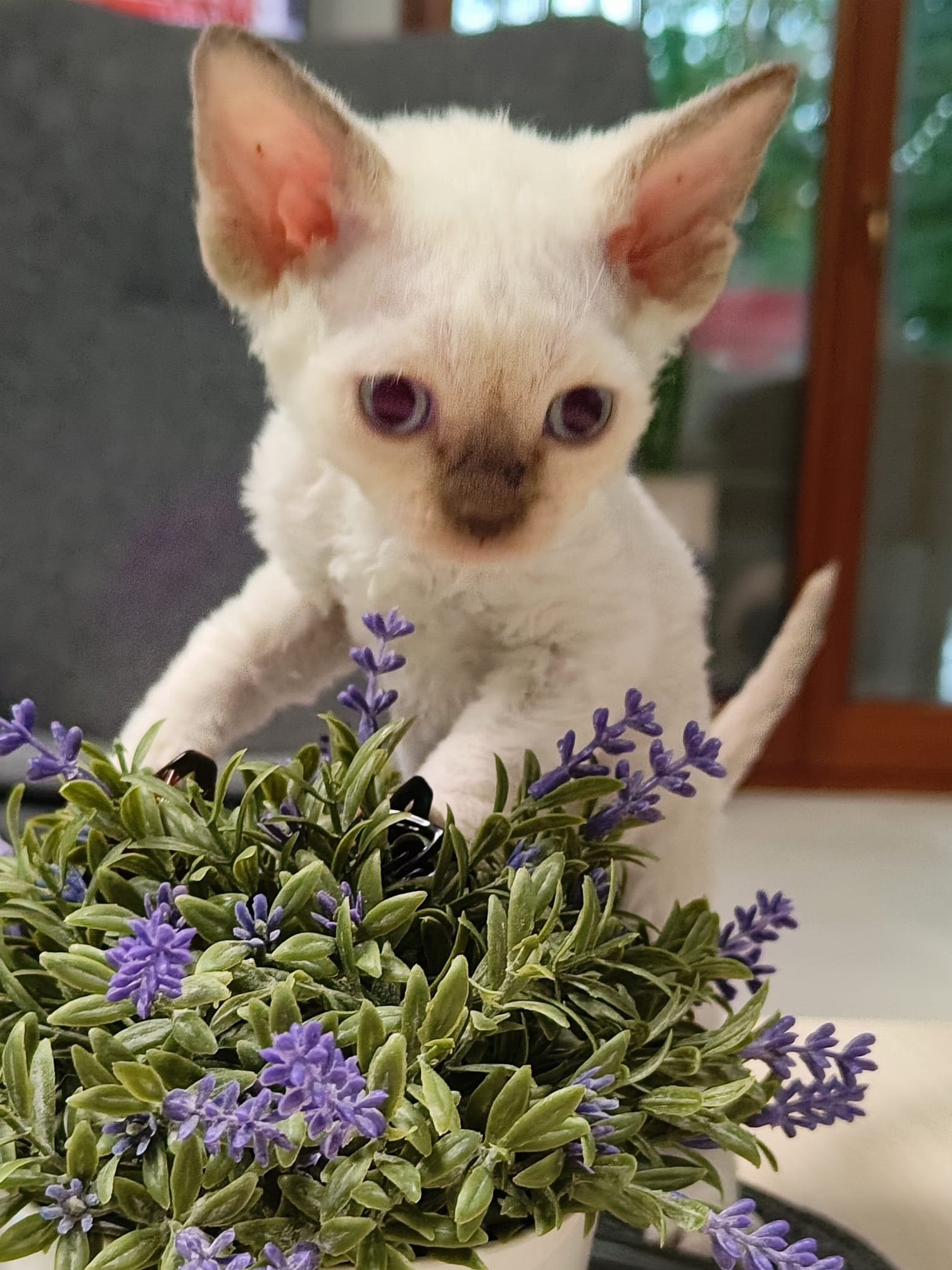 Pozostała z nami w hodowli Kotki Kędziorki*PL, miała jeden miot (G), a następnie dosyć szybko przeszła na kocią emeryturę (wyszło, że macierzyństwo to nie jej bajka).